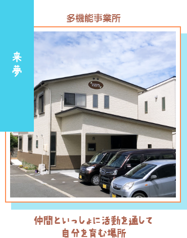 「暮らす」「働く」「楽しむ」体験や練習を重ねながら一人一人の目標やペースにあわせて、次のステップへの架け橋になりたいと思っています。