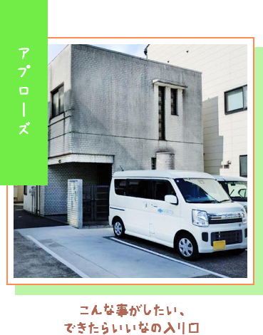 私たちは、地域にあって様々な生きにくさを抱えている方を対象に、相談や生活支援をはじめ体験・交流の場を提供し、人と人または資源と資源の間を円滑に「繋ぐ」役割を担い、誰もが認め合い助け合いながら安心して健やかに暮らせる地域作りに取り組んでいます。